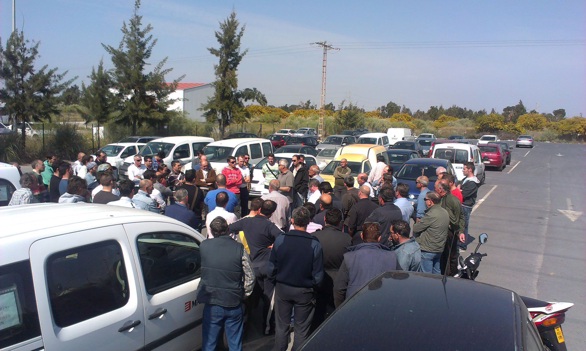 Asamblea en los aparcamientos de la Refinería para dirigir la acción sindical del Sindicato Unitario. O para manejar a los trabajadores según el presidente del comité de empresa por la UGT.