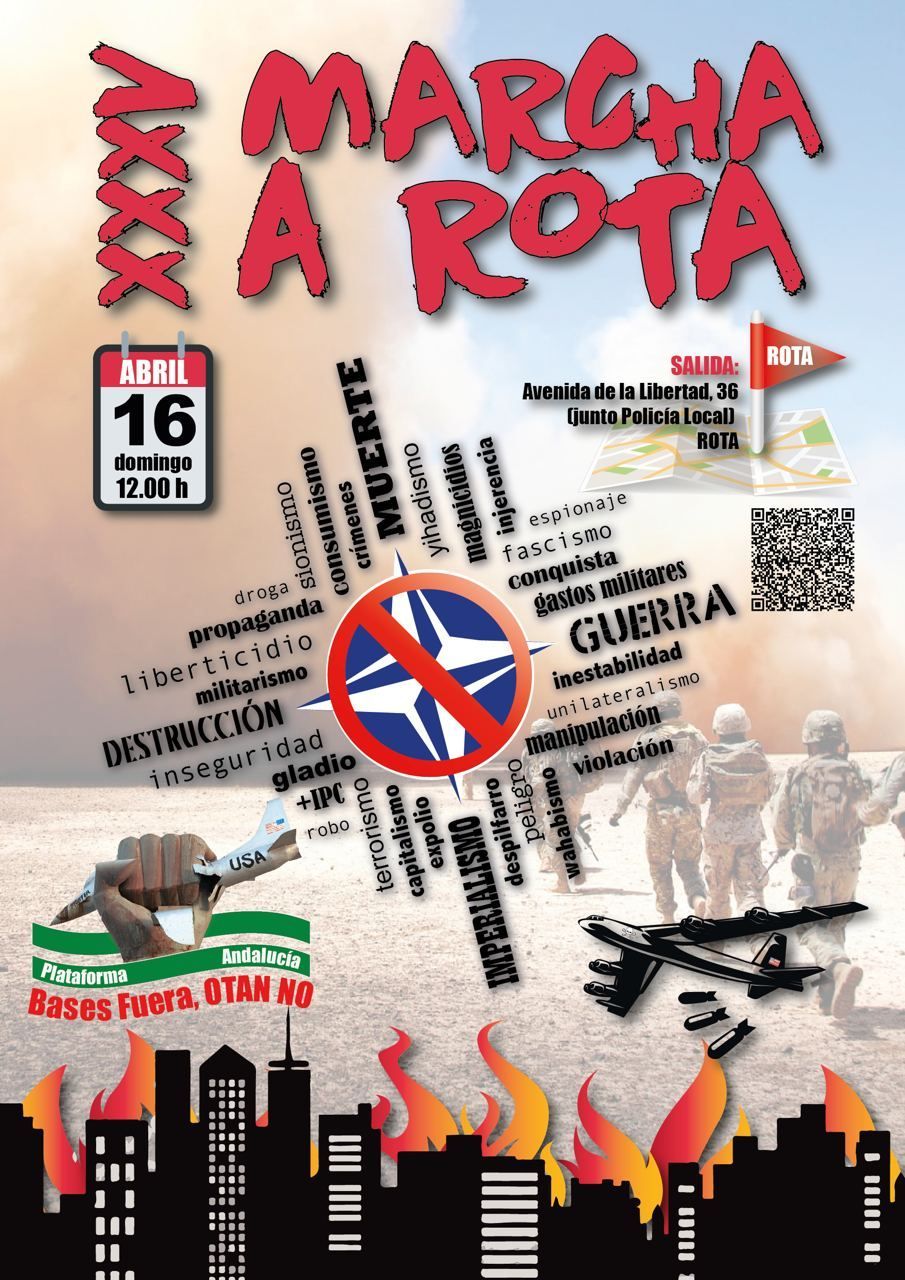 La clase obrera andaluza, organizada y consciente, esteremos en la marcha a Rota contra las bases y contra la OTAN el próximo 16 de abril, convocada por la Plataforma Andaluza bases fuera, OTAN No